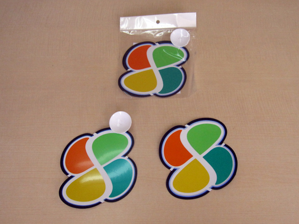 マグネット3個と吸盤1個 寸法150高×210幅 文字、色などご希望に合わせて製作します。 |