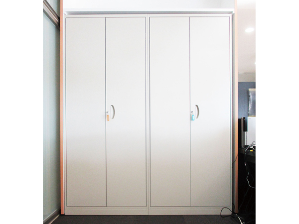 | ■サイズ:W900×H2,160×D450㎜ ■収納数:660枚/台 ■扉がサイドに収納。カギ付き。 |