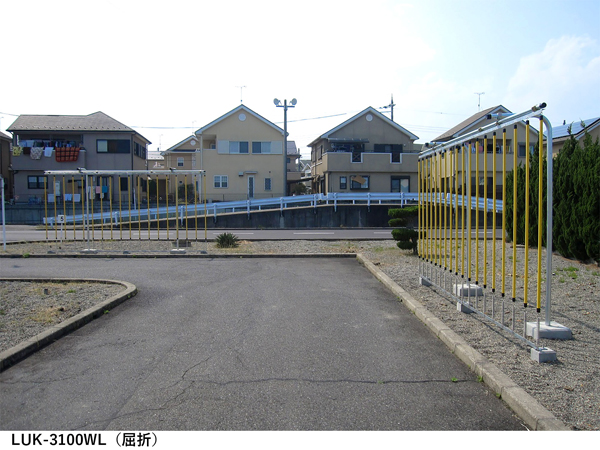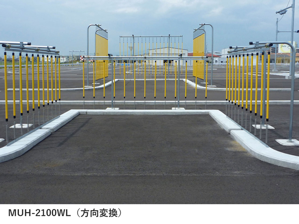| ポールが折れにくい 引張りスプリングを使用することにより、車両がポールに当たった時の衝撃を緩和します。 ※吊下げ式の場合、ポールの逃げ幅が少ないため、ポールが折れる恐れがあります。 ![]() |